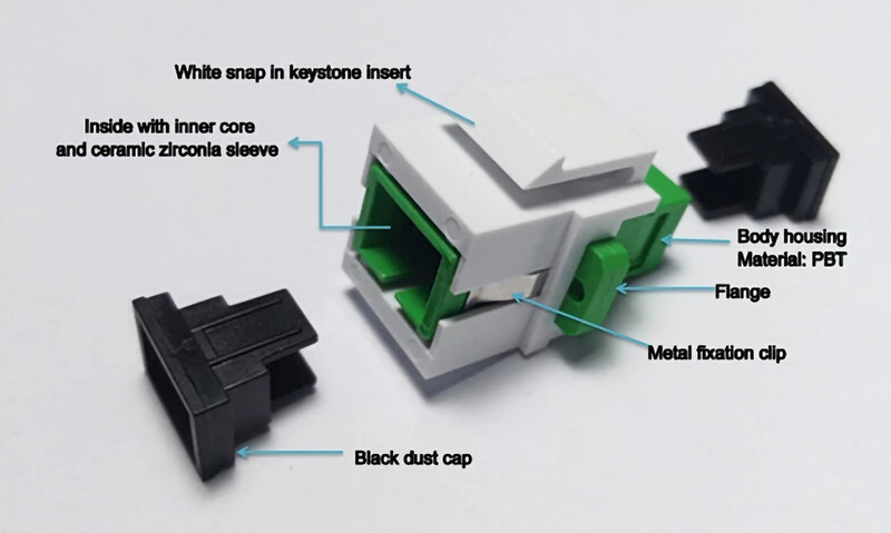 SC APC Simplex Keystone Adaptador com teste de carga da flange ≥ 70 N Temperatura de armazenamento 40°C a 85°C