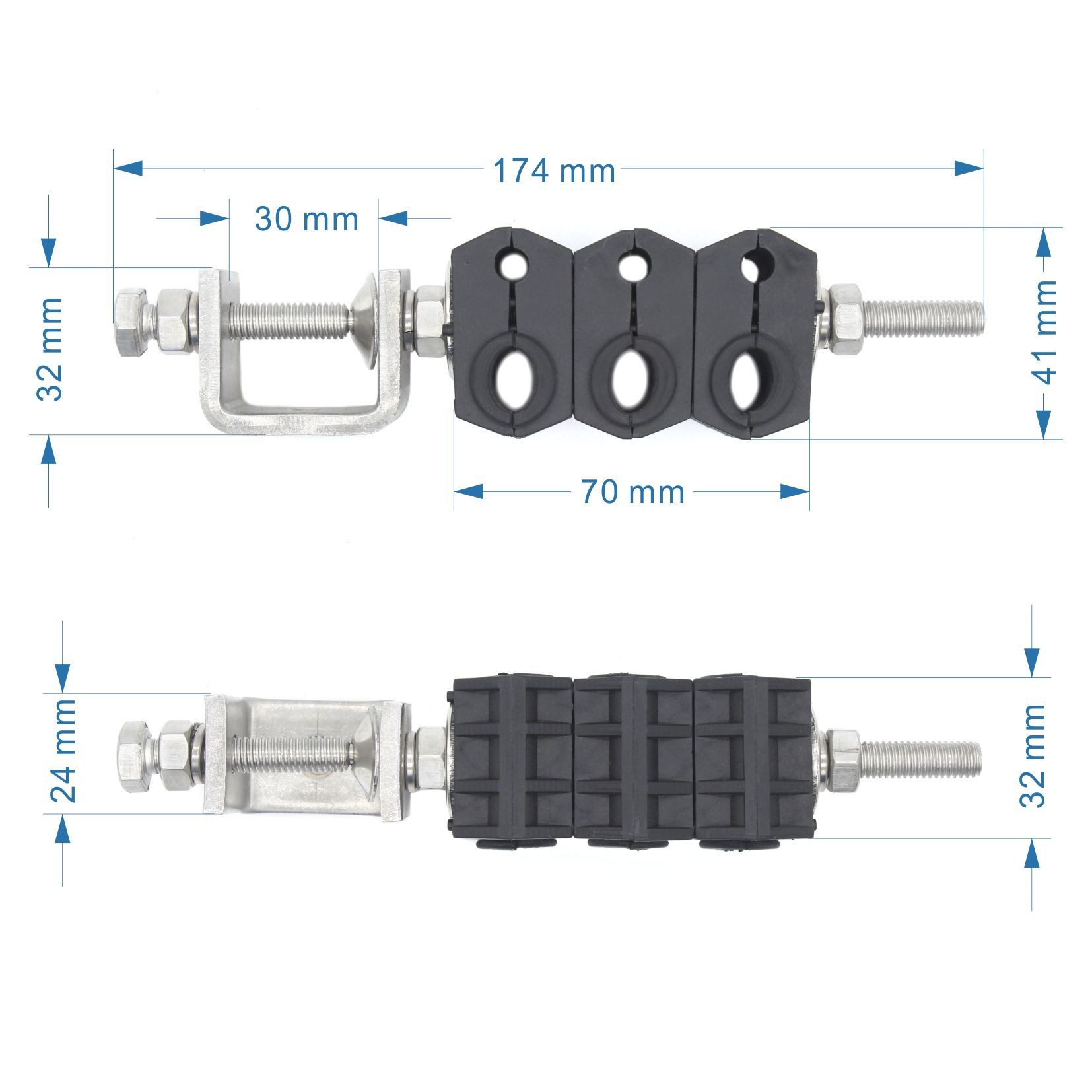 Material das pinças de plástico gémeas | PP reforçado com fibra de vidro, preto | Material metálico | De aço inoxidável 304 ou galvanizado a quente |