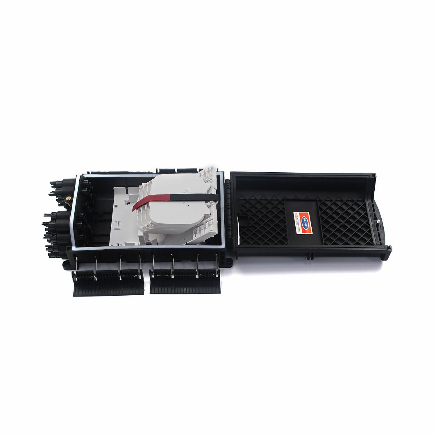 Fechamento de emplaçamento de fibra óptica é capaz de suportar até 288 pontos de emplaçamento como fechamento externo. Projeto à prova d'água com nível de proteção IP68. Integração com cassete de emplaçamento flap-up.É utilizado como um ponto de empalhe para o cabo de alimentação para se conectar com o cabo de distribuição no sistema de rede FTTx Integra o empalhe de fibras, armazenamento e gestão de cabos numa sólida caixa de proteção.