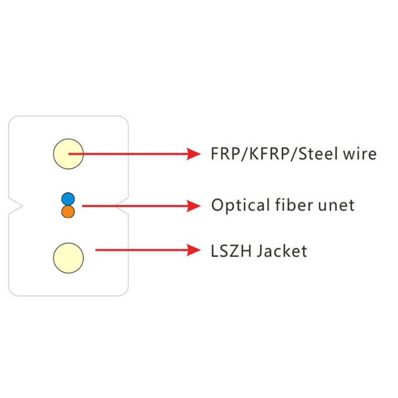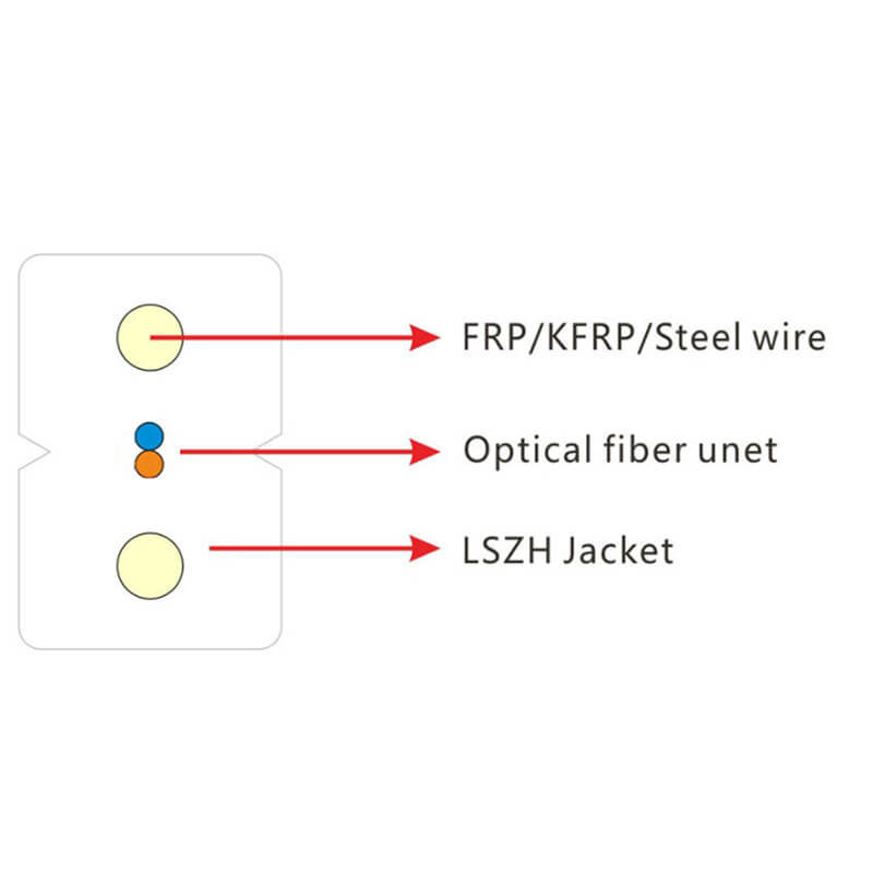 FTTH Indoor Drop Cable é principalmente de 1-4 núcleos, comumente usado do final do usuário ao ponto de divisão, com um calibre de 2,0 * 3,0 (ordinário), preto é principalmente para uso externo (proteção UV),O branco é usado principalmente para cablagem em corredores (estética), e existem outras cores como o amarelo. A estrutura é uma fibra óptica central G657 com reforços metálicos ou não metálicos paralelos em ambos os lados (proteção contra raios),e a proteção exterior é principalmente material LSZHA superfície 3.0 tem uma ranhura em forma de V na linha central. Quando rasgada, a fibra óptica foge naturalmente, e os reforços em ambos os lados são virados para fora sem expor a camada de bainha.O raio de flexão da fibra óptica G657 é de 15-20 mm, o que reduz a perda durante a flexão.e um conector rápido ou conector frio pode ser instalado no painel do usuário.