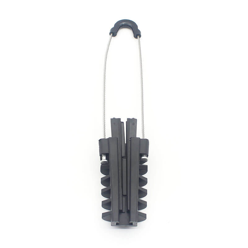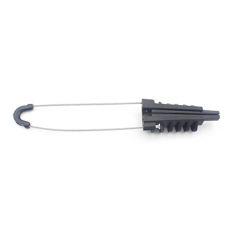 As pinças de fixação do tipo cunha são auto-ajustáveis, enquanto a instalação puxa a pinça para o poste, usando ferramentas especiais de instalação para linhas de fibra óptica, como puxar meias, blocos de corda,alavanca de elevação para esticar o cabo de aglomerado aéreo. A medida necessária distância do suporte para a fixação de âncora e começar a perder a tensão do cabo; deixe as cunhas de pinças ancorar o cabo por dentro por graus.