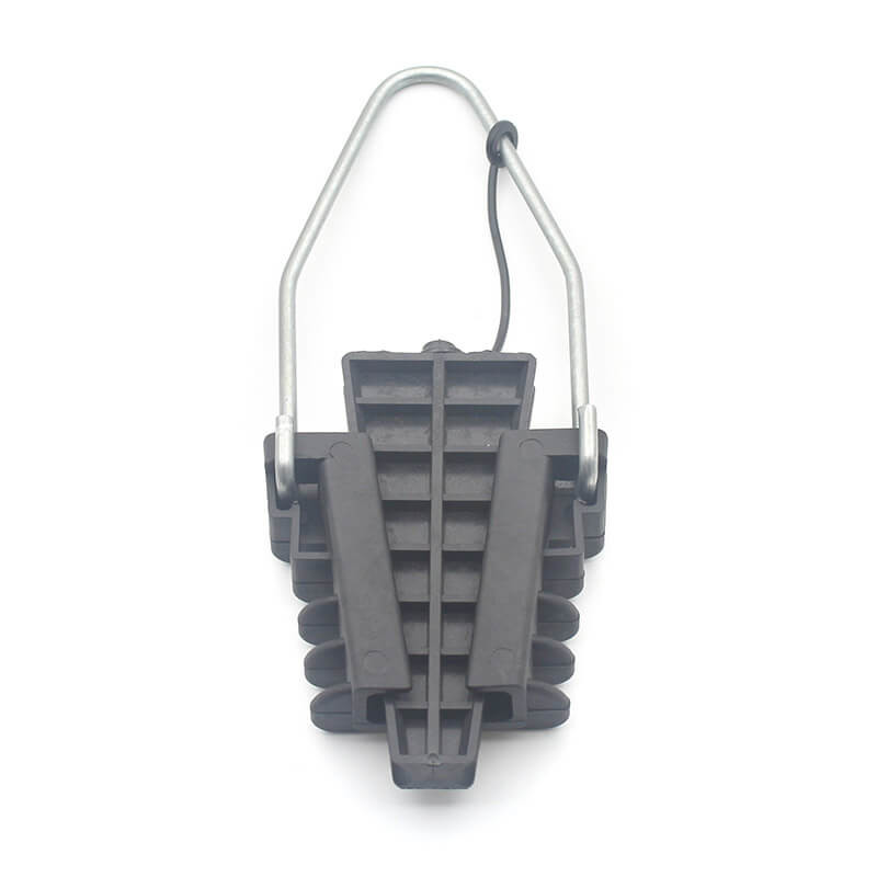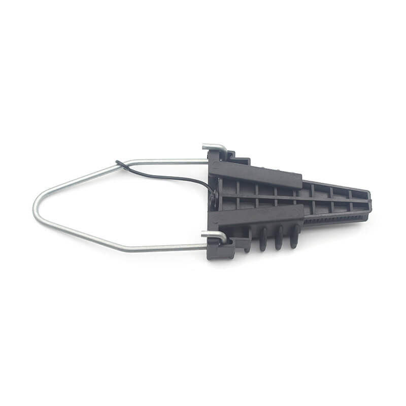 A pinça de ancoragem é concebida para ancorar linhas LV ABC com mensageiro neutro isolado.A fivela flexível é equipada com uma sela isolante móvel e as duas mangas são comprimidos nas extremidades e bloqueado no corpo da pinçaUm par de cunhas prende automaticamente o cabo dentro do corpo cônico.