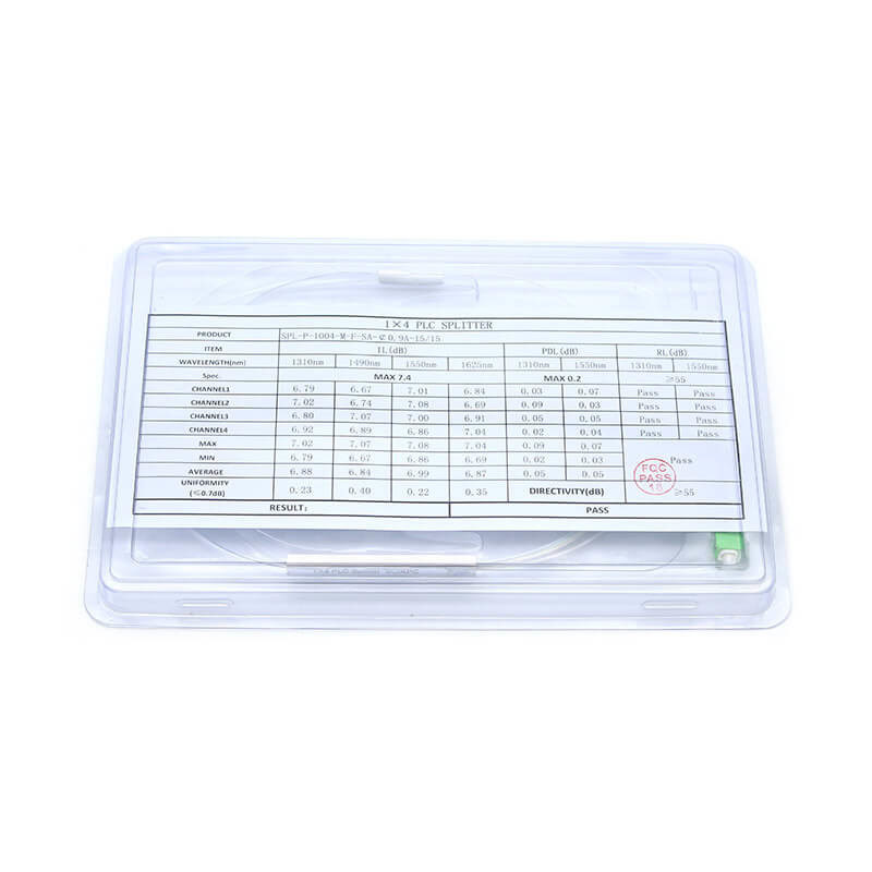 LSZH Fibra Óptica 1x4 PLC Splitter 0.9mm Mini Tipo Com Conector para FTTX e PON Network