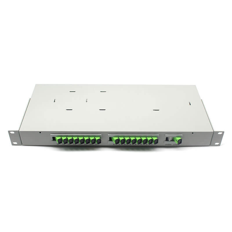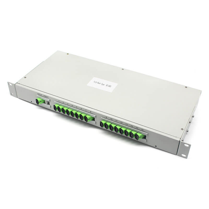 O divisor PLC tipo rack baseia-se em guias de onda de dióxido de silício, disponível para o sistema CATV e utilizado para ligar equipamentos principais e terminais nas redes EPON, BPON e GPON,e pode distribuir o sinal de luz uniformemente.