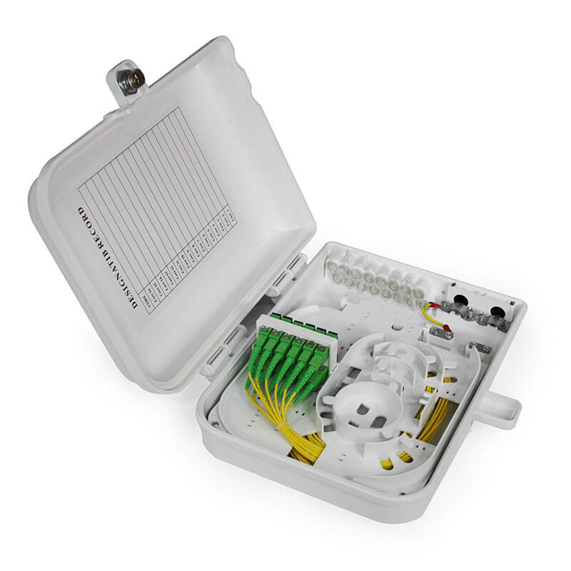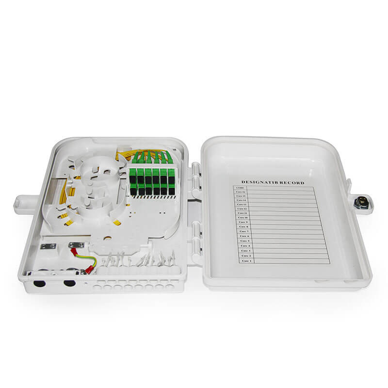 Caixa de terminais FTTH 12F para montagem de parede interior e exterior ou montagem de poste com fácil conexão e distribuição de fibras cruzadas