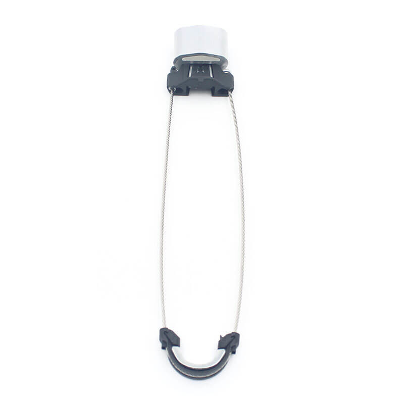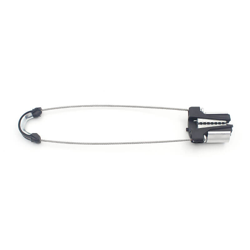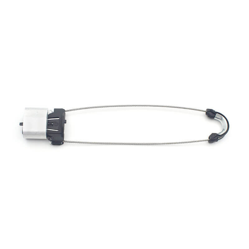 A pinça de fixação é concebida para fixar e suportar o cabo, assegurando simultaneamente a tensão necessária da linha de cabo.um par de cunhas dentadas de metal (dispositivo de fixação) e uma dobradiça flexívelTodas as partes estão interconectadas e não podem ser perdidas. É instalado em pares no início, no final e com um intervalo de 5 suportes ao longo do comprimento do cabo.A pinça de ancoragem reduz significativamente a duração do processo de suspensão do cabo.