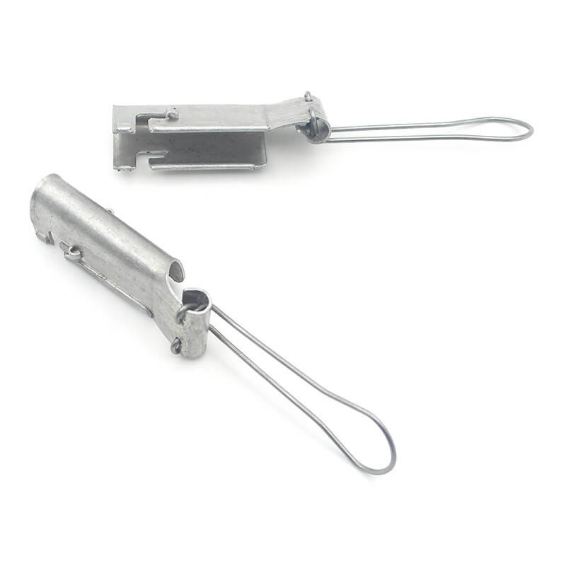 O grampo de fio de queda de alumínio para cabo de telecomunicações é um tipo de grampo de fio. É amplamente usado para fixar muitos tipos de cabos. A pinça de fio de gotejamento de alumínio caracteriza-se por uma elevada resistência, boa resistência ao calor e uma longa vida útil.