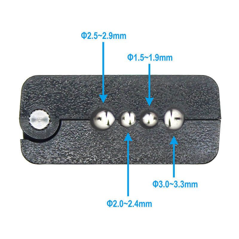 | Diâmetros dos cabos | 1.5 ~ 1.9mm, 2.0 ~ 2.4mm, 2.5 ~ 2.9mm, 3.0 ~ 3.3mm |