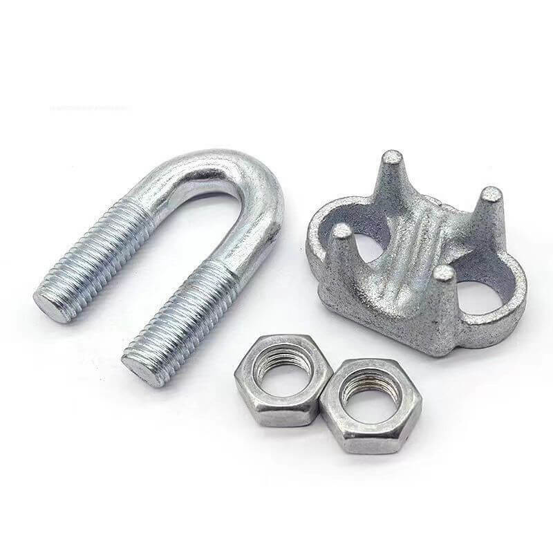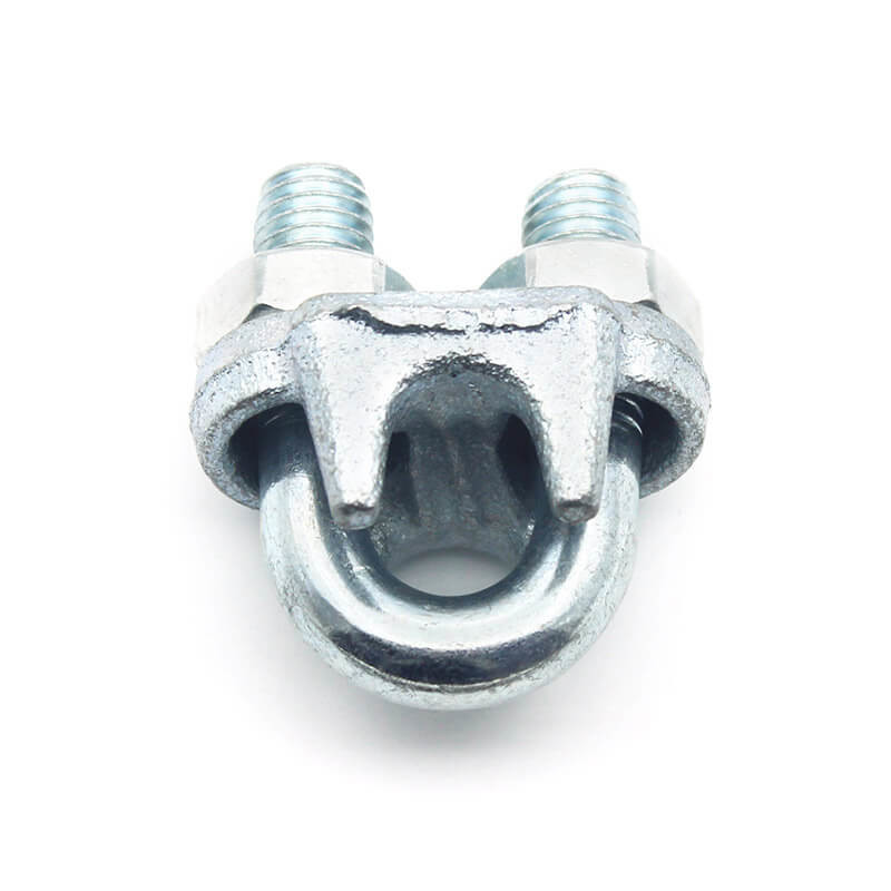 Forjar clips de fio de corda, o principal material é a escolha de aço carbono, o ferro maleável relativo tem uma grande vantagem de preço.padrões de produção de clips de corda de arame de aço carbono utilizando o padrão americano G450, de acordo com os diferentes requisitos dos clientes, o processo de produção para o processo de forja a óleo, tratamento de superfície utilizando a tecnologia galvanizada.
