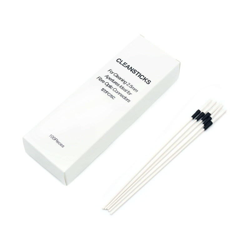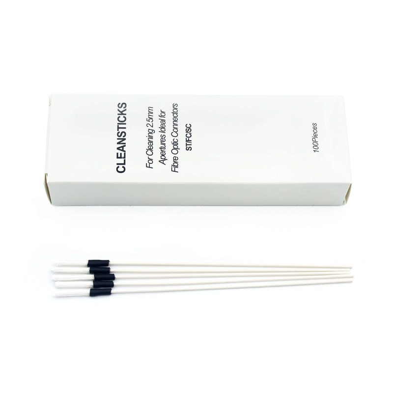 Um bastão de limpeza de fibra óptica (também chamado de bastão de limpeza de fibra óptica, limpador de um clique ou limpador de tipo push) é um compacto,ferramenta semelhante a uma caneta concebida para limpeza rápida e eficiente de conectores de fibra óptica (LC), SC, FC, ST, MTP / MPO, etc.). Ele usa um sistema de fita adesiva auto-avançada para remover poeira, óleo e detritos das faces finais com um mecanismo de empurrão simples.