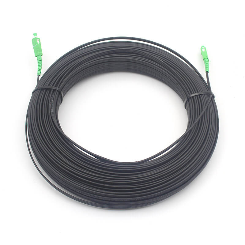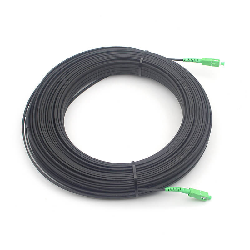 Exterior 2*5.0mm FTTH SC APC Flat Drop Patch Cord Com Balck Jacket